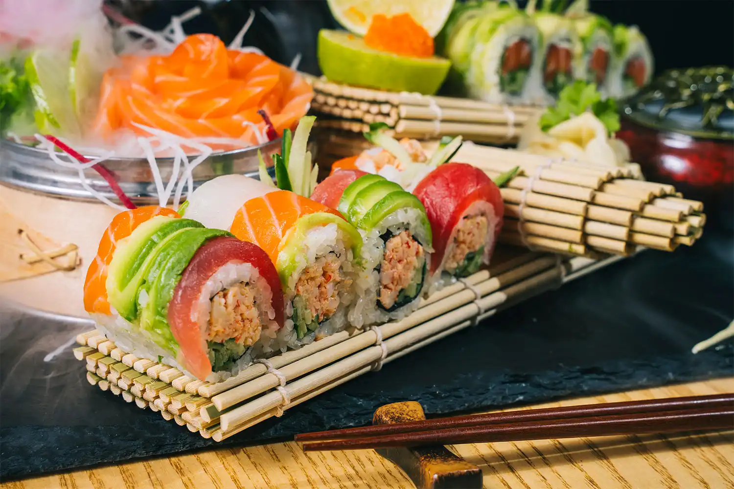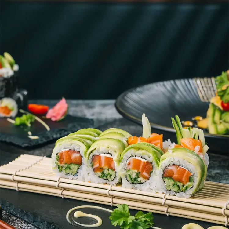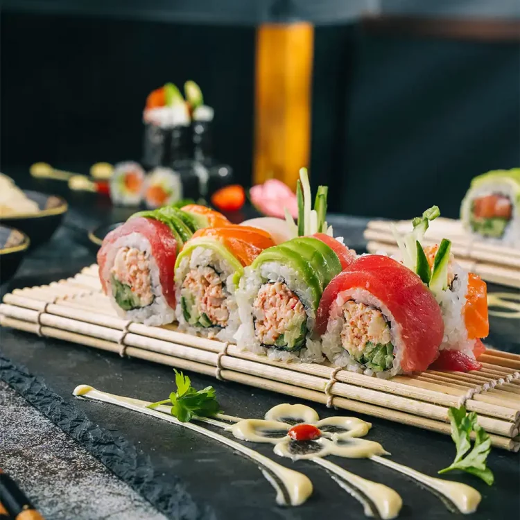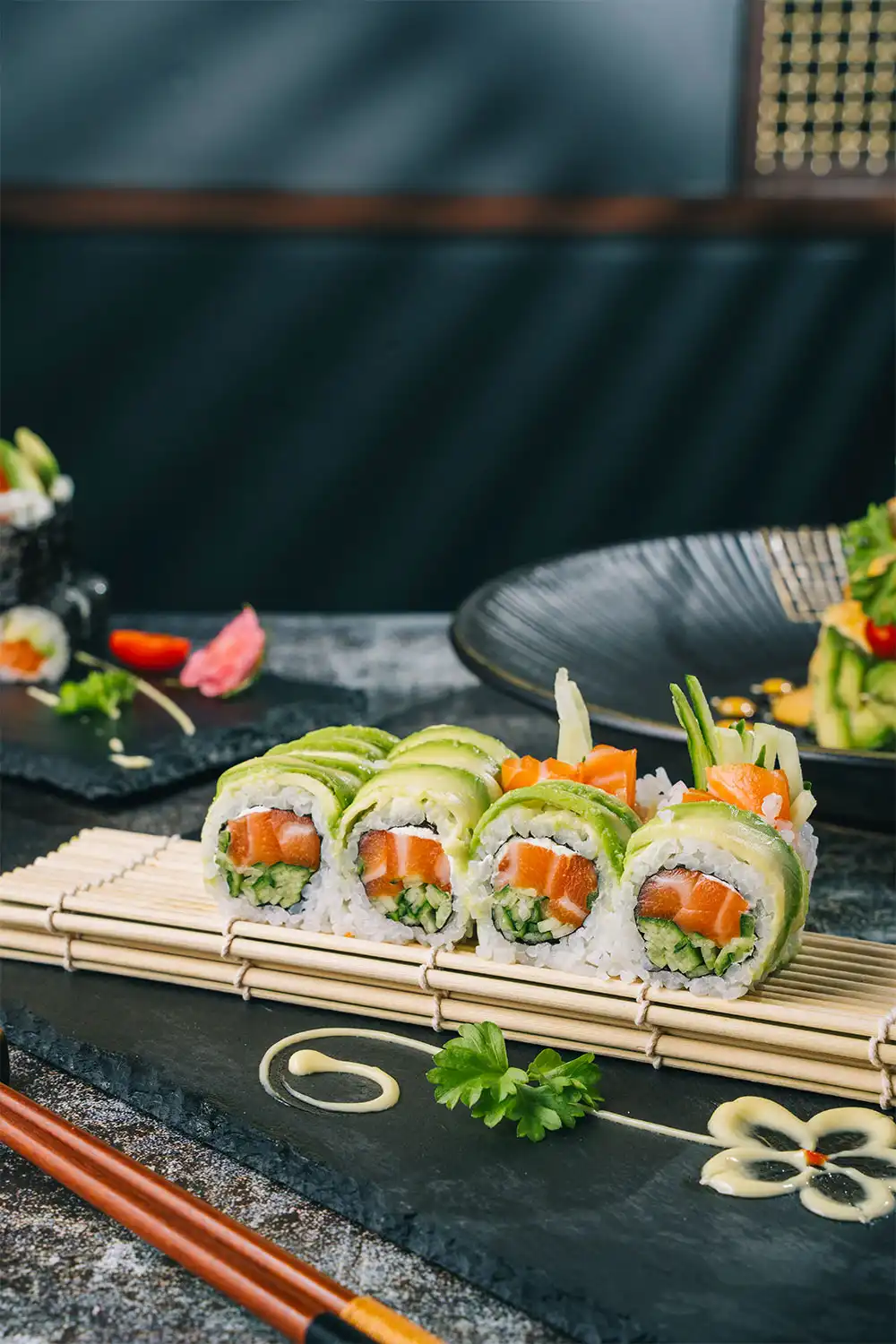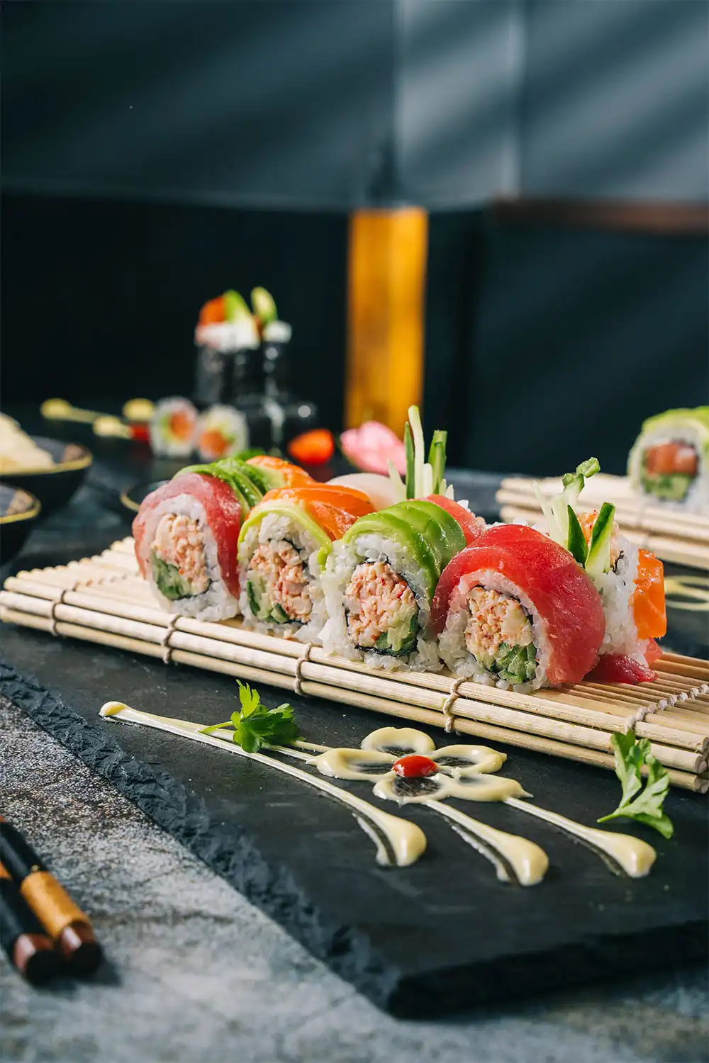 Tauche ein in die faszinierende Welt der japanischen Esskultur bei MIDO, wo wir innovative Sushi-Kreationen mit einer Vielzahl von Schichten und Komponenten zaubern. Jedes Stück ist eine kunstvolle Verschmelzung verschiedener Aromen und Texturen, die sich harmonisch zu einem wahren Geschmackserlebnis vereinen.